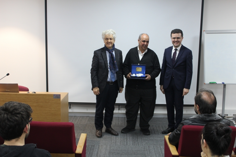 Fatih Sultan Mehmet Vakıf Üniversitesi Biyomedikal Mühendisliği Dekanı Prof. Dr. Fevzi Yılmaz ve Alüminyum Test Eğitim ve Araştırma Merkezi Müdürü Dr. Ebubekir Koç’un, Prof. Dr. Ercan Öztemel’e hediye takdimiyle konferans son buldu.