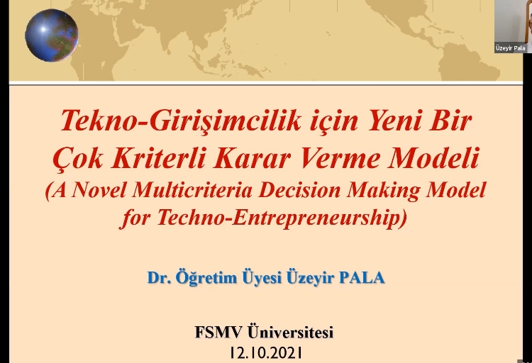 İnşaat Mühendisliği Bölümü bünyesinde 12 Ekim 2021 tarihinde “Tekno-Girişimcilik için Yeni Bir Çok Kriterli Karar Verme Modeli” adlı bir söyleşi gerçekleştirilmiştir. Girişimcilik ve İnovasyon Dersi bünyesinde yapılan söyleşinin moderatörlüğünü Prof. Dr. Fevzi Yılmaz yapmıştır. Haliç Üniverstesi’nde öğretim üyesi olarak çalışan Dr. Üzeyir Pala söyleşide konuşmacı olarak yer almıştır.