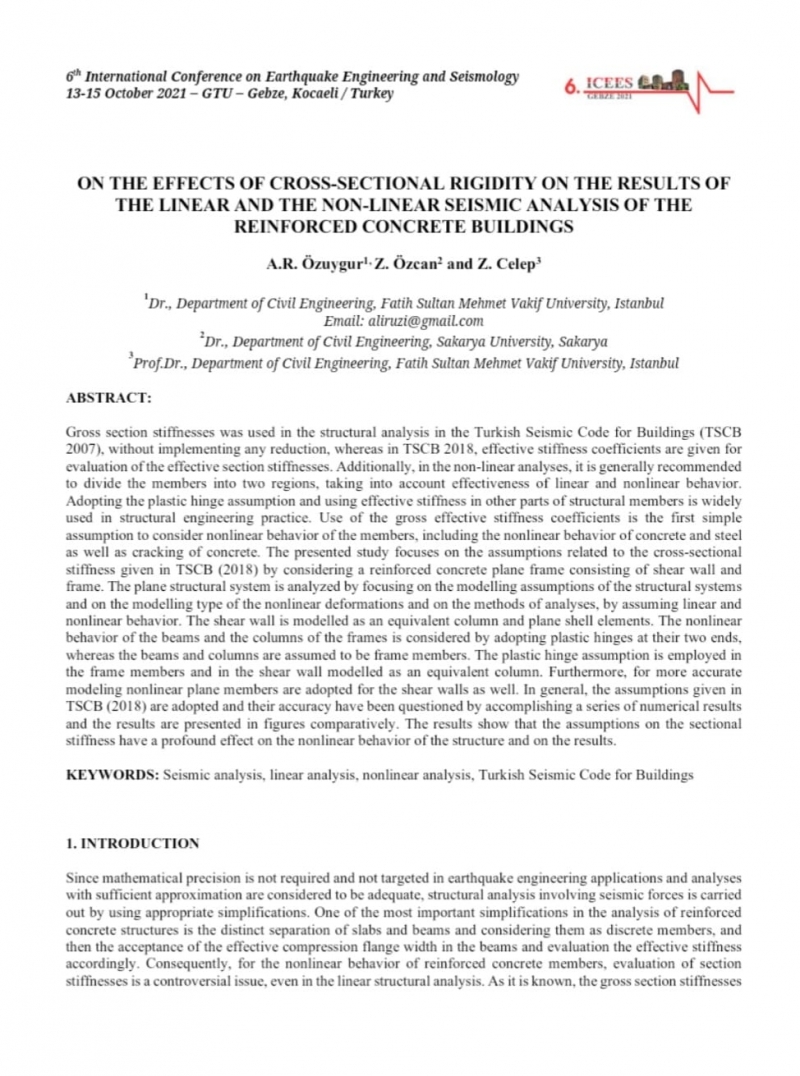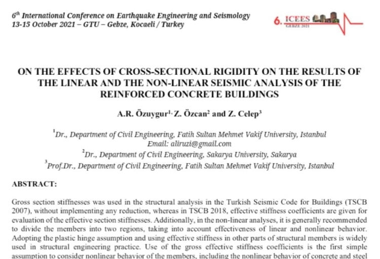 Ozuygur A., R., Ozcan Z., Celep Z.; On the effects of cross-sectional rigidity on the results of the linear and the non-linear seismic analysis of the reinforced concrete buildings, 6th International Conference on Earthquake Engineering and Seismology, 13-15 October, Gebze Kocaeli.