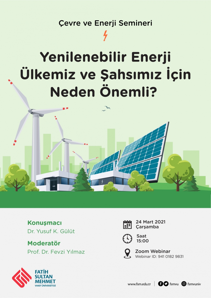 Mühendislik Fakültesi Çevre ve Enerji dersi kapsamında “Yenilenebilir Enerji Ülkemiz ve Şahsımız İçin Neden Önemli?” adlı seminer 24 Mart 2021 tarihinde Zoom Webinar üzerinden gerçekleştirilmiştir.